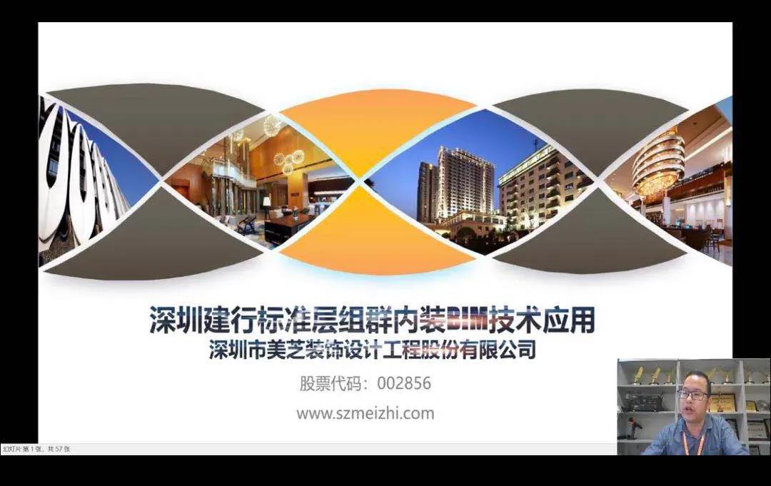 2020年10月15日,美芝股份研究院副院長廖世剖先生應(yīng)邀參加由中國建筑裝飾協(xié)會(huì)工業(yè)和信息化分會(huì)、中國建筑裝飾知行學(xué)院聯(lián)合主辦的數(shù)字裝飾線上直播,分享題為《深圳建行標(biāo)準(zhǔn)層組群內(nèi)裝BIM應(yīng)用介紹》。